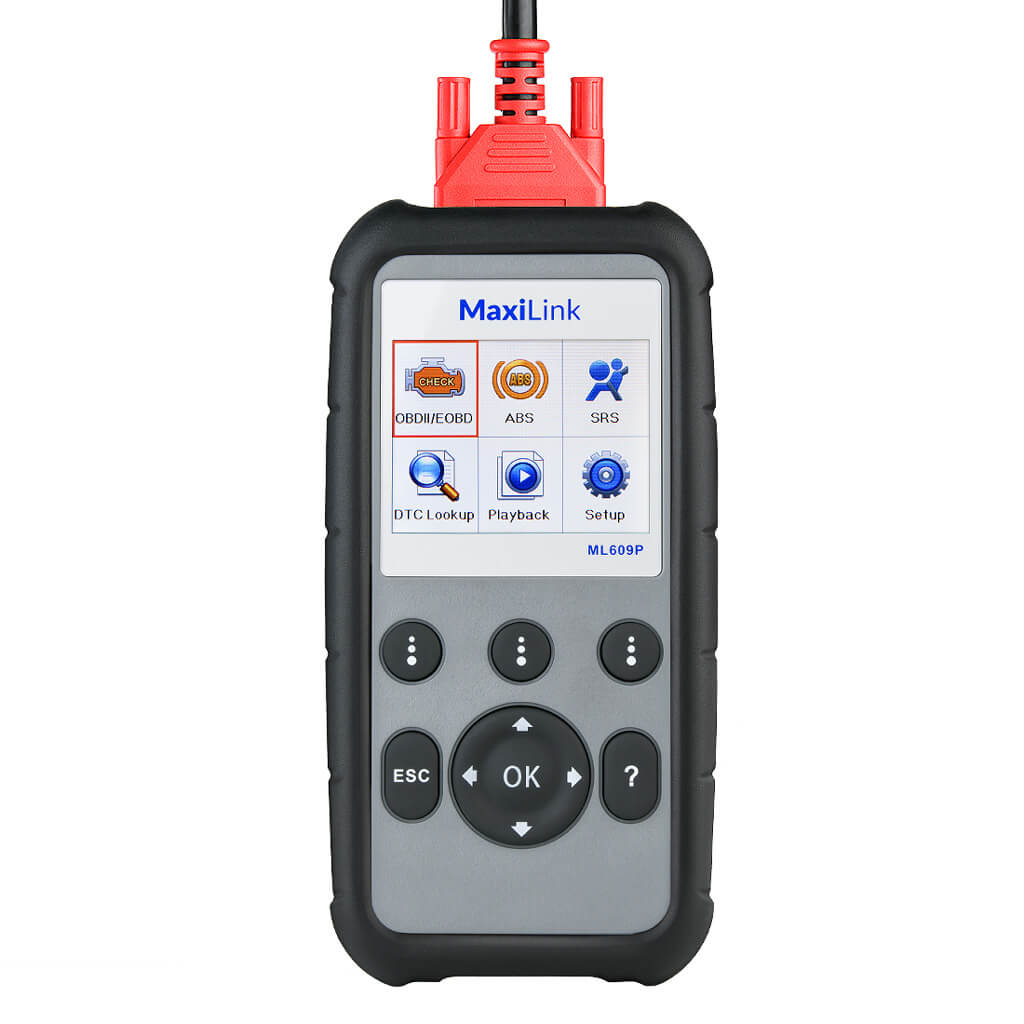 The ABS/SRS + CAN OBDII MaxiLink ML609P is built to help you determine why the Malfunction Indicator Light or the ABS warning light is on. Featured with ABS and SRS system diagnosis, 2.8’’ LCD, built-in DTC lookup library, ML609P offers swift code reading function.
