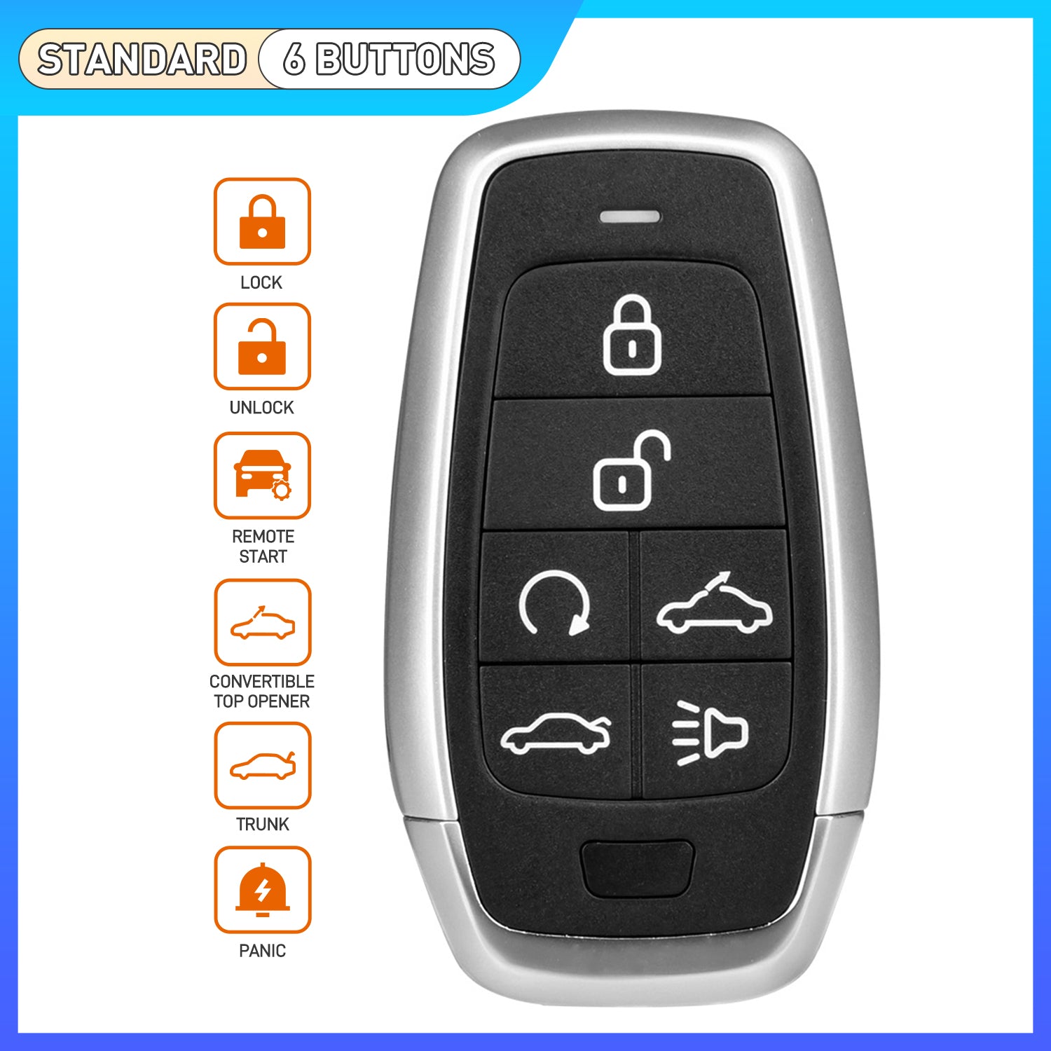 - 6-button, Lock, Unlock, Remote Start, Conv. Top, Trunk, Panic