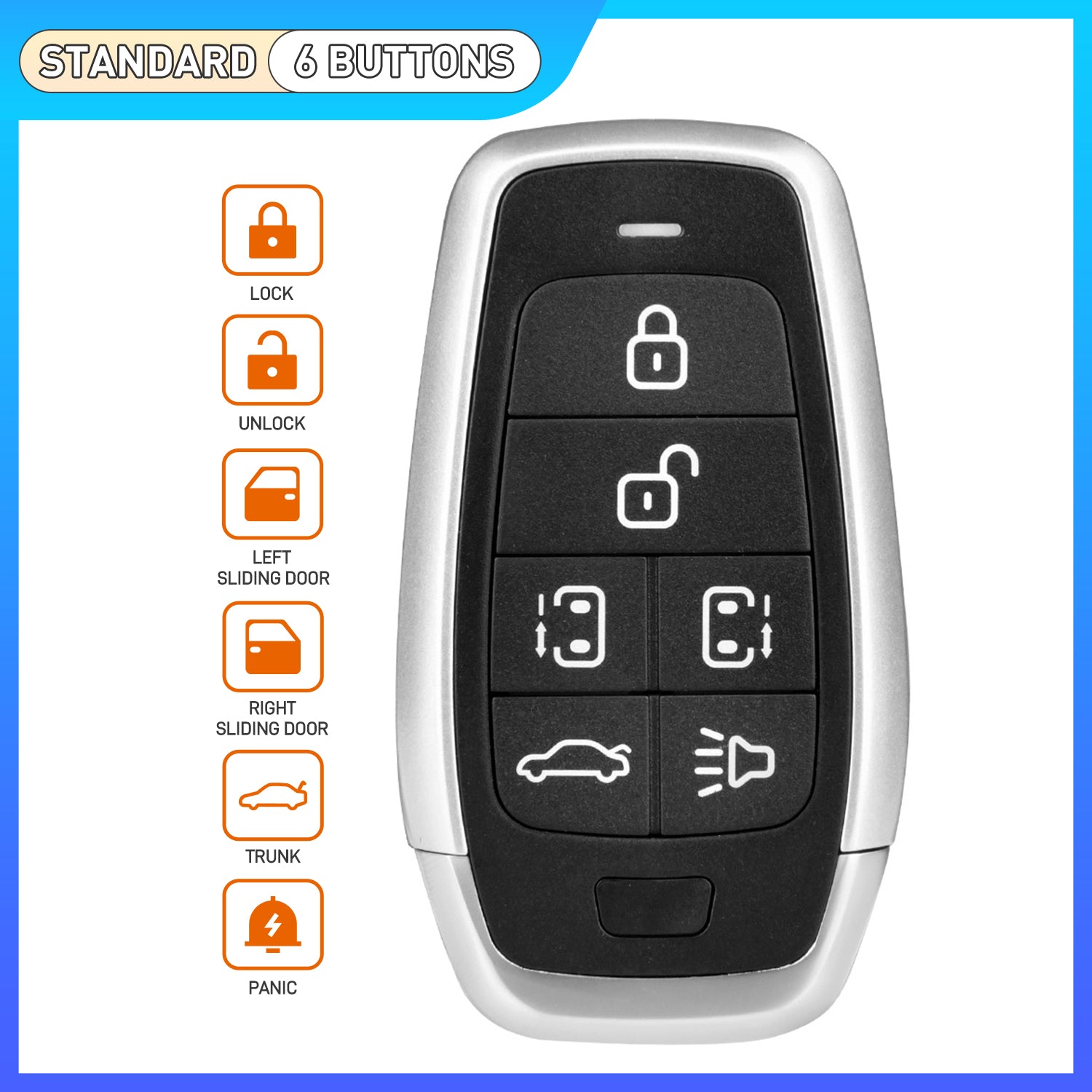 - 6-button, Lock, Unlock, Left Door, Right Door, Remote Start, Panic
